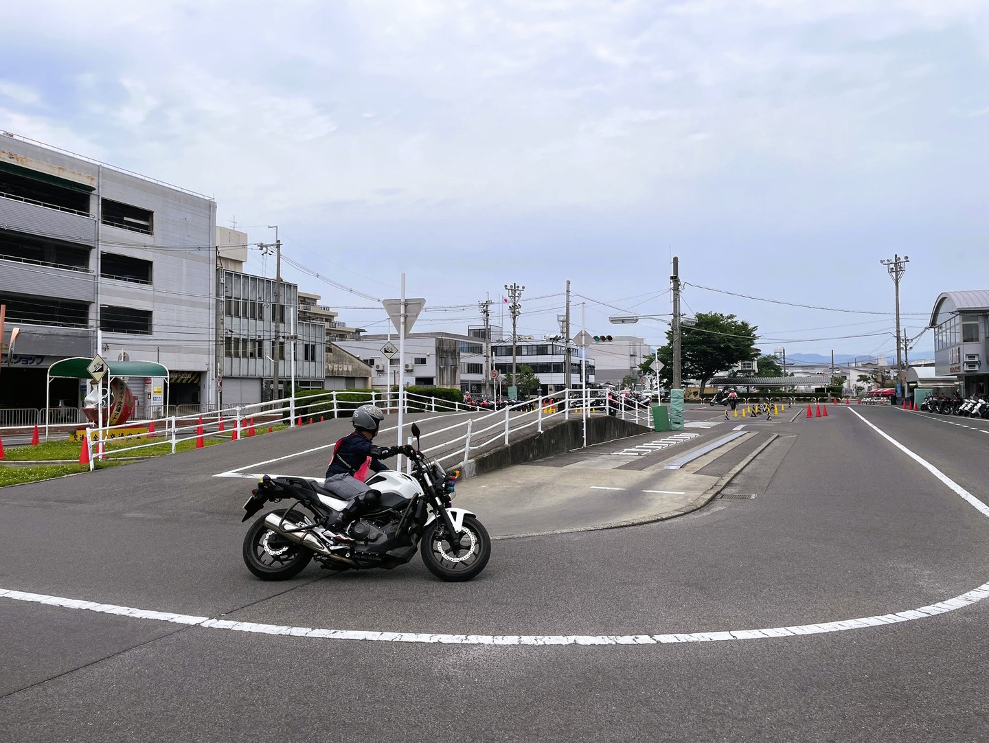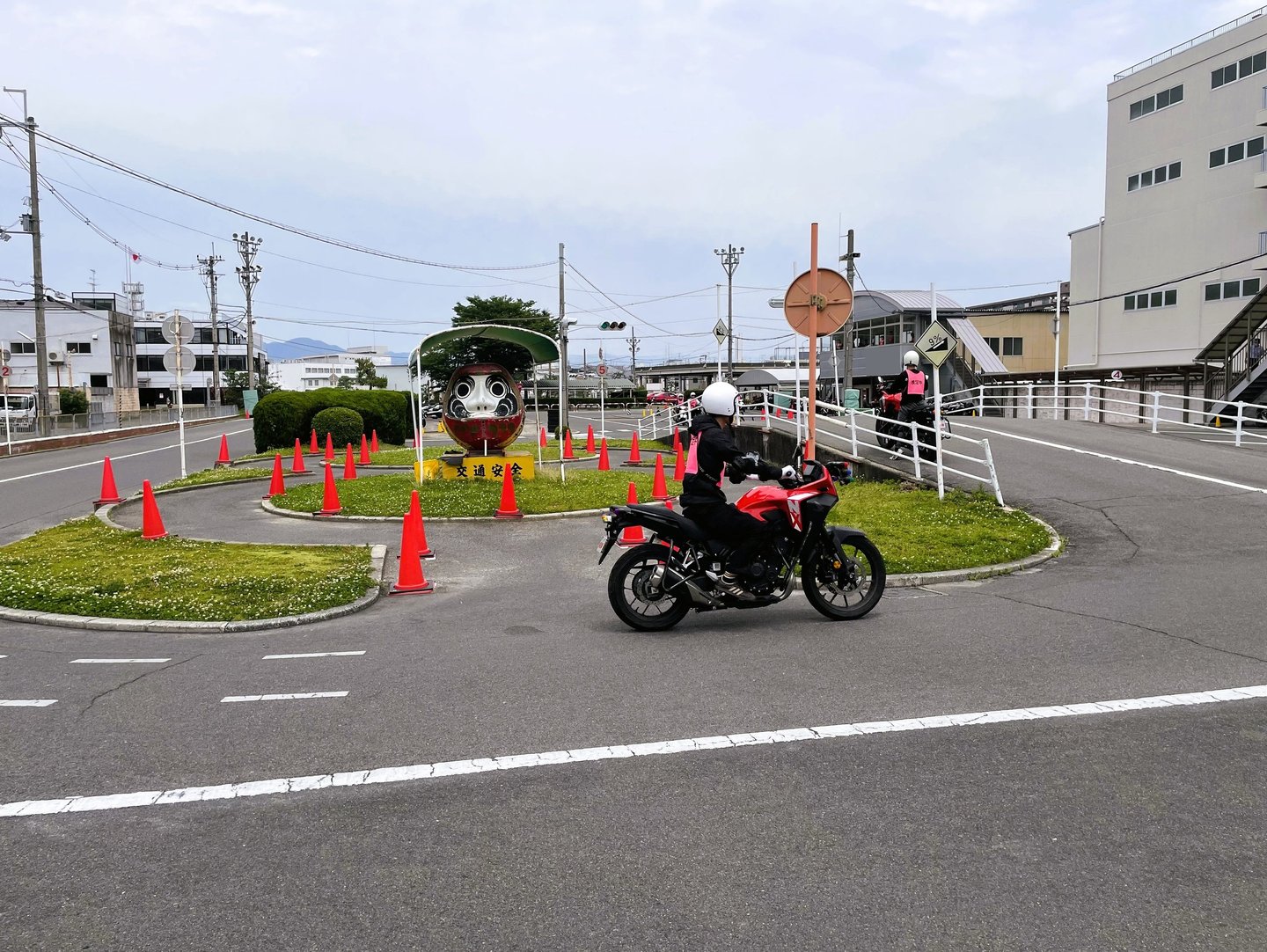 In Phase 1, we practice the fundamentals of riding: mounting, starting the engine, shifting gears, stopping… and then the so-called “obstacles,” like the “single plank,” “slalom,” “figure eight,” “corners,” and other difficult techniques.