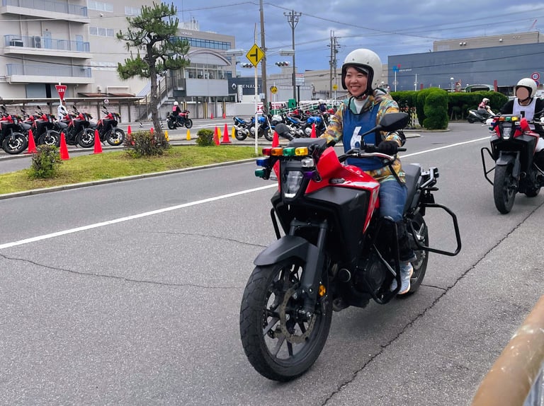 But first, there was a test: “Can you lift a mid-size motorcycle that has fallen on its side by yourself?” The school uses a Honda NX500, which weighs about 200 kg. It was pretty heavy, but I managed to lift it and passed the test.